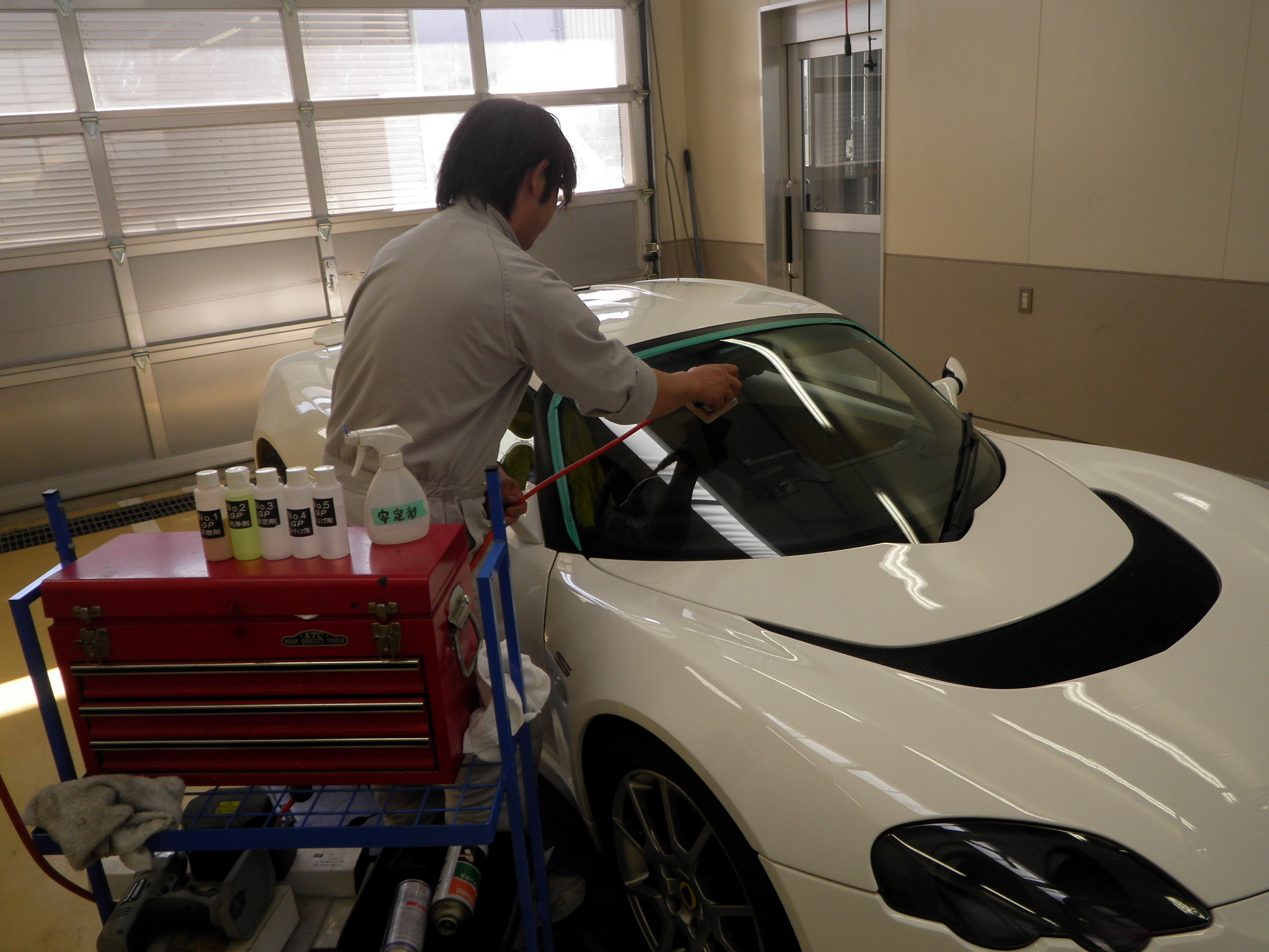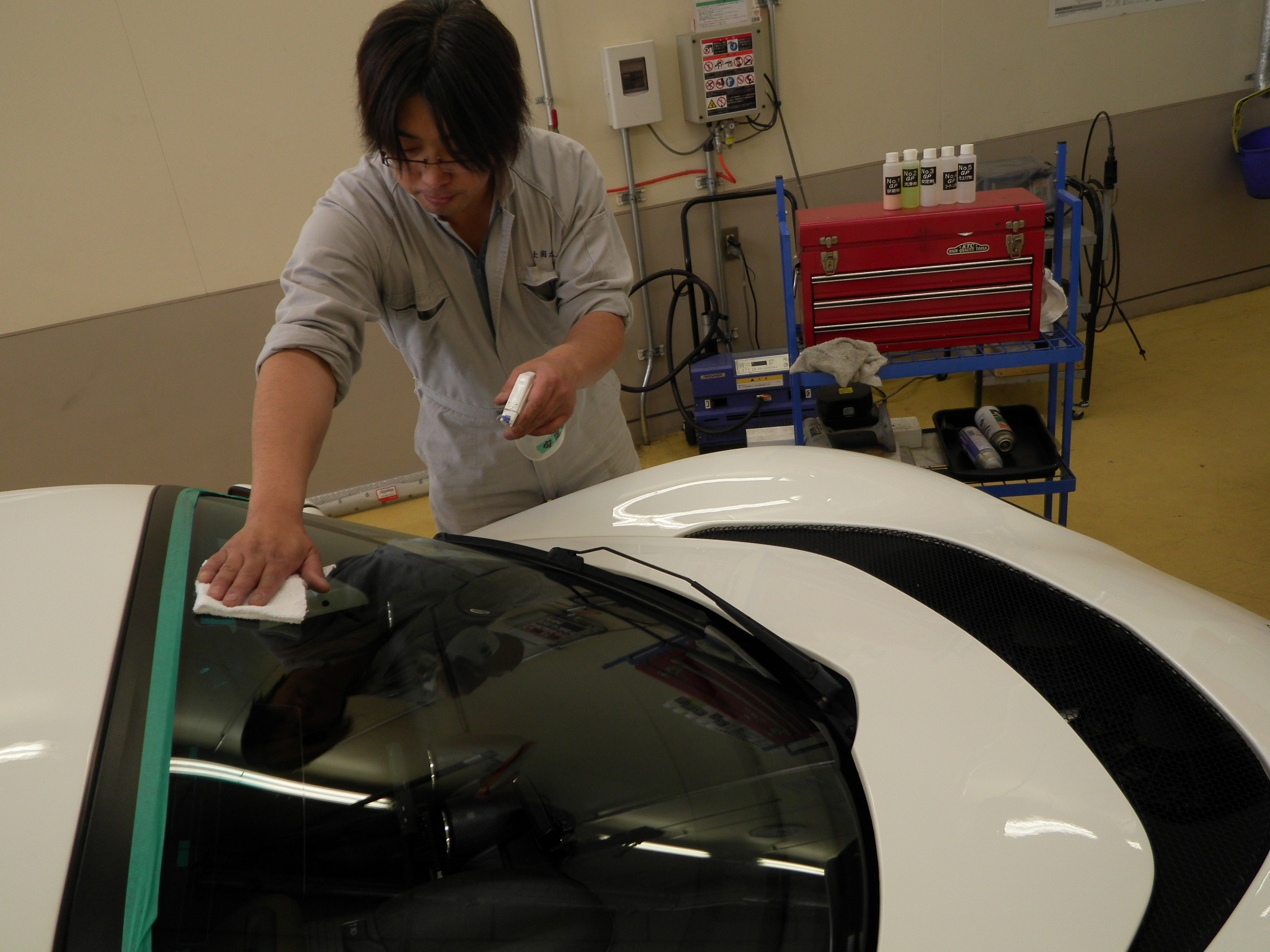 - GPコーティング液を、ガラス面にまんべんなく塗布します。